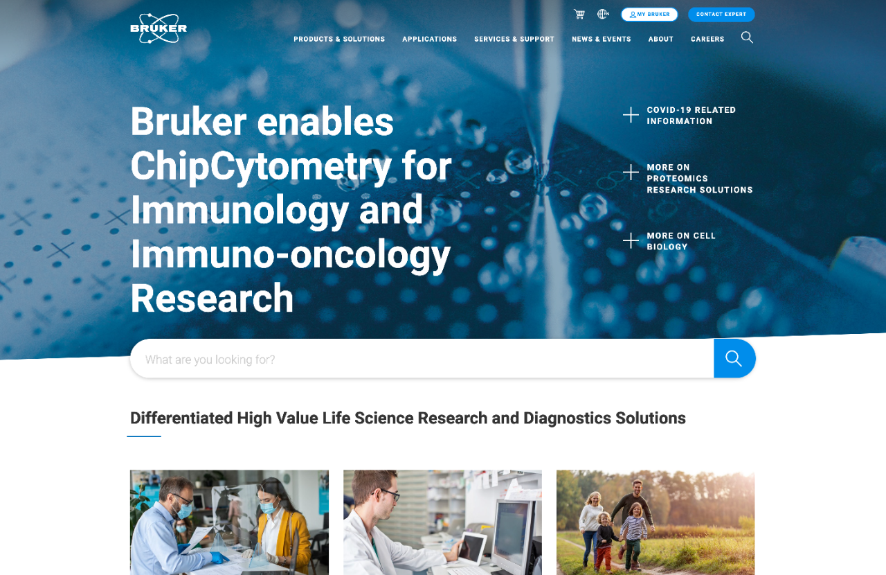Cognizant Netcentric was brought in to work alongside Bruker, a leader in scientific instrument manufacturing, to create a new state-of-the-art website to showcase their products and services to their audience of universities, scientific companies, and healthcare providers. A key challenge Bruker was facing with their legacy CMS was managing content changes with ease and at speed. Their previous system slowed down their content management, mainly regarding multi-language support systems, where they weren’t able to translate different languages within their website. In addition, they needed to rebrand and update their user experience to optimize digital sales and product exploration. Cognizant Netcentric collaborated with a global Bruker team to realize the new digital experience and interaction strategy leveraging many new functionalities and solutions.