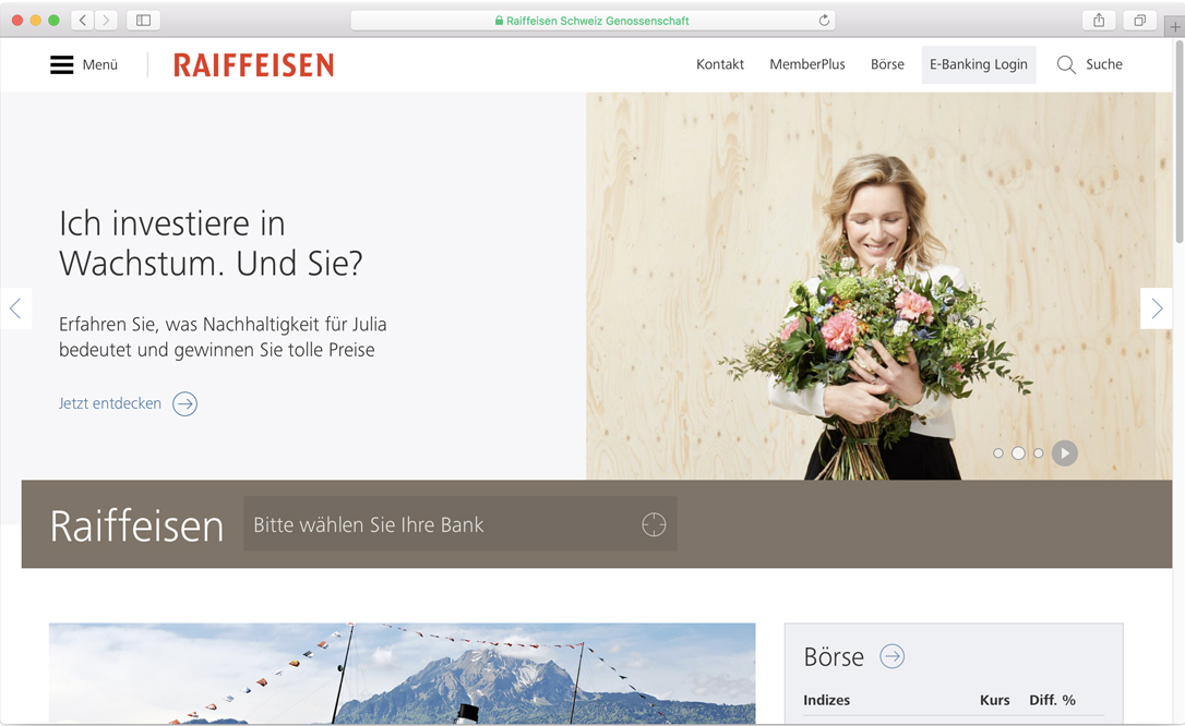 - Raiffeisen won best practice awards, including Gold for “Online Marketing” at “Best of Swiss Web Awards”
